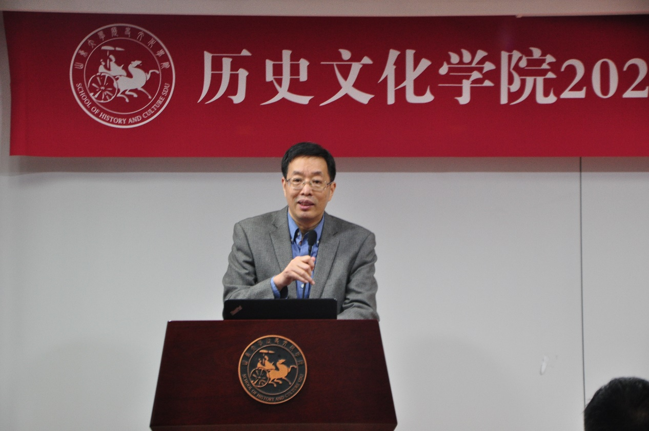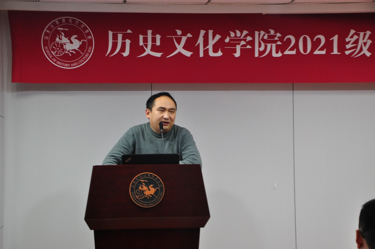 吴雪飞老师作为强基班学业导师代表在发言中谈到了对强基计划学习培养方案的理解,他勉励学员熟悉强基班学制,努力学习专业知识,找到自己的兴趣方向,多读学术著作和了解学术研究,在史学研究的道路上行稳致远。