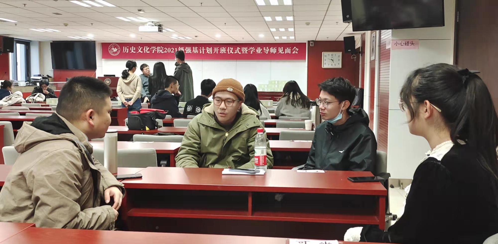 12月9日下午,历史文化学院2021级强基计划开班仪式暨学业导师见面会在知新楼A座1017举行。历史文化学院副院长刘家峰,历史学系主任谭景玉,强基计划学业导师代表吴雪飞、冯佳、宋弘,强基计划班主任武绍卫共同参会。会议由辅导员李虎主持。