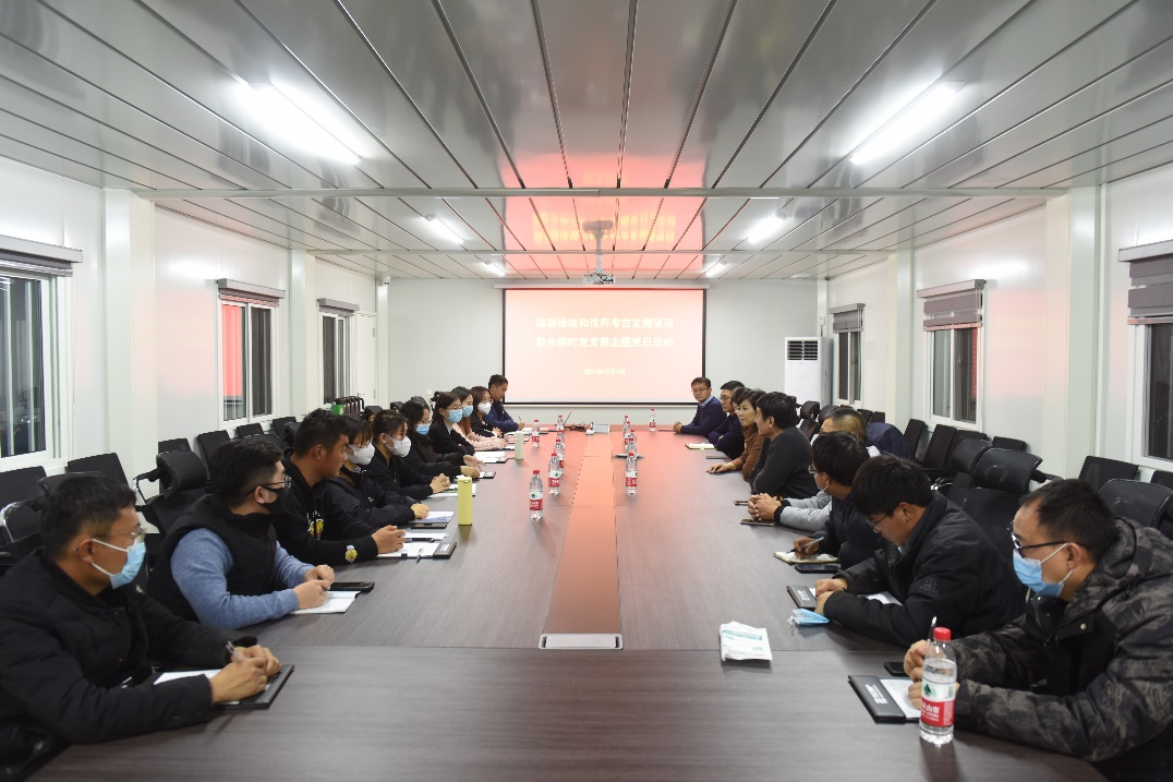 近日,红足官网考古系师生在临淄徐姚和悦府考古发掘项目部组织了临时党支部第三次主题党日活动。山东省文物考古研究院院长孙波、历史文化学院党委书记刘军、副处级辅导员李一楠、山东山东方正房地产开发有限公司办公室主任杜金洪共同出席,活动由联合临时党支部书记、考古系教授郎剑锋主持。