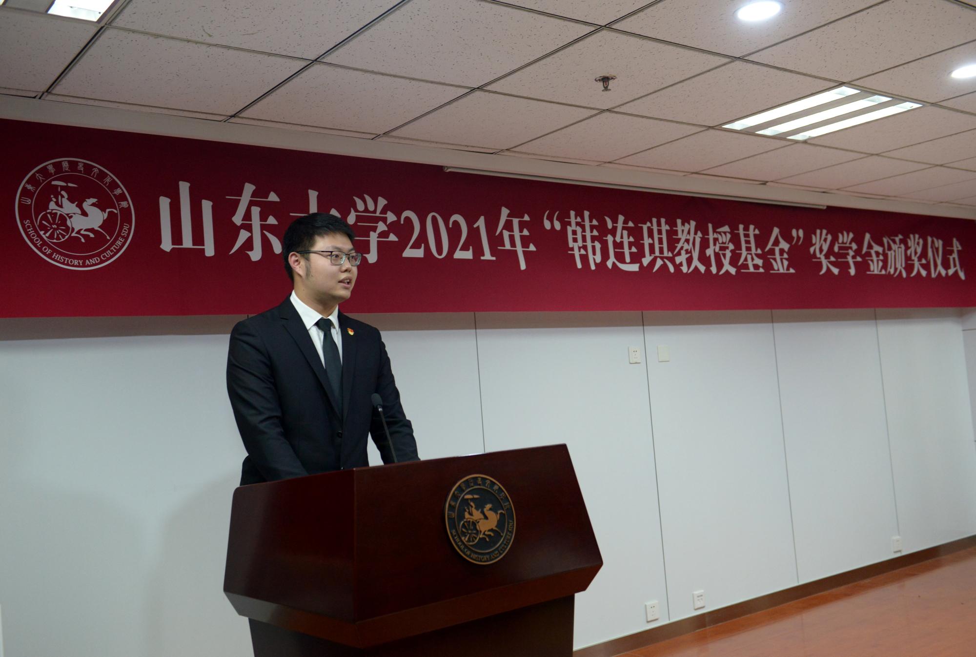 韩榛在发言中首先对所有获奖学生表示了祝贺。同时,进一步带大家回顾了韩连琪教授生平事迹,传达了韩连琪教授作为老一辈研究者对历史学科建设的支持与对青年学子的希冀。希望未来进一步同学校、学院做好韩连琪教授基金委员会工作,支持帮助更多青年学生投入到史学研究中。
