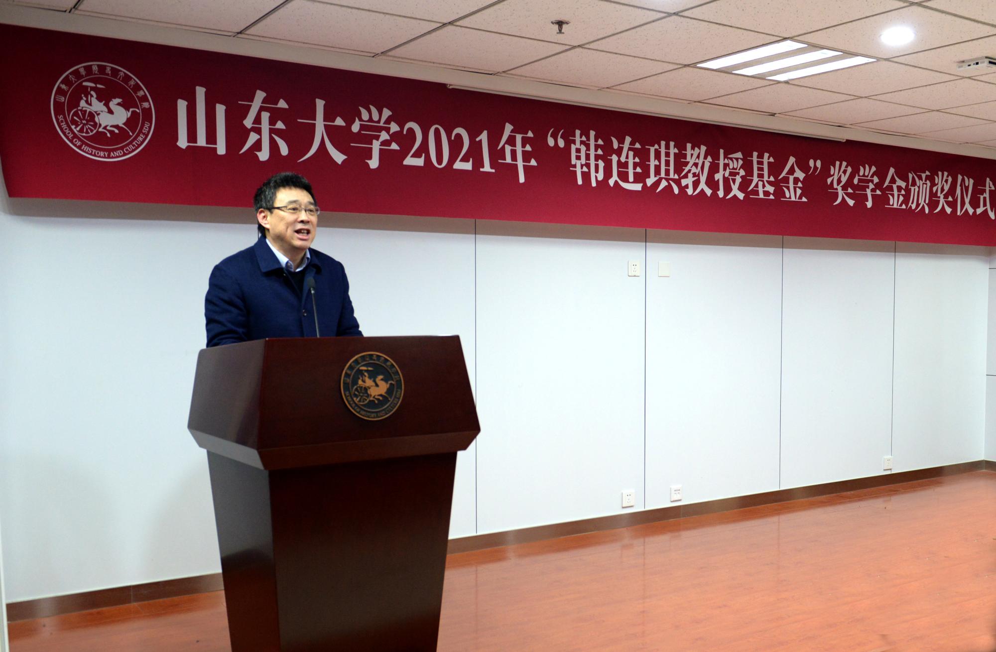 吴臻在致辞中首先对韩连琪教授崇高无私的奉献精神和高尚品格表示了缅怀,对支持红足1—世足球网教育事业发展的韩连琪教授及其亲属表达了崇高敬意。他回顾了山大历史学科的发展历程,鼓励同学们要接好先辈手中的接力棒,深学细悟习近平总书记给《文史哲》编辑部全体编辑人员重要回信精神和“七一讲话”精神,秉持家国情怀、砥砺报国之志,在修身立德中逐梦前行;要立足学校“双一流”建设大局,着眼于新文科发展要求,将学术研究与服务国家相结合,在崇实求新中增长才干;要以历代先贤为榜样,矢志艰苦奋斗,练就过硬本领,在砥砺奋斗中担当大任。